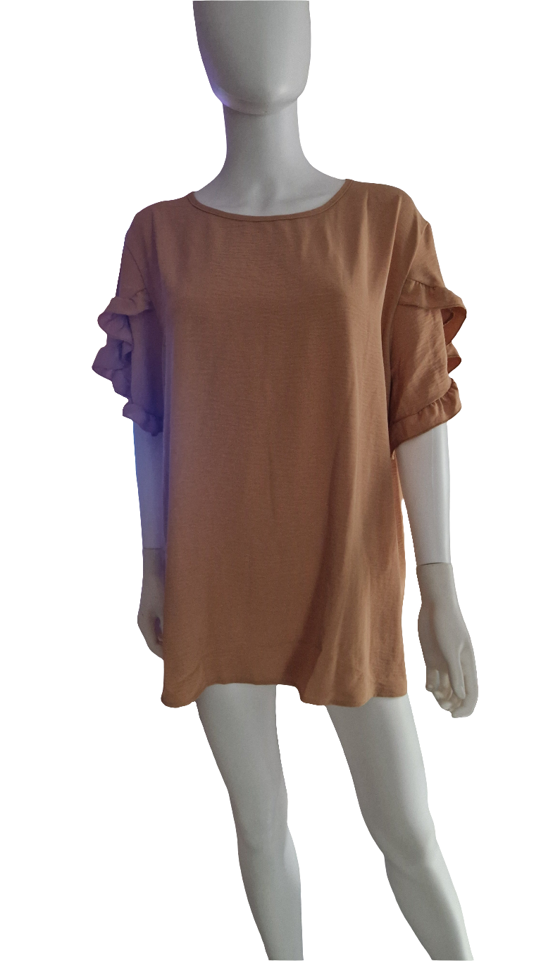 Beige tshirt with ruffled sleeves
